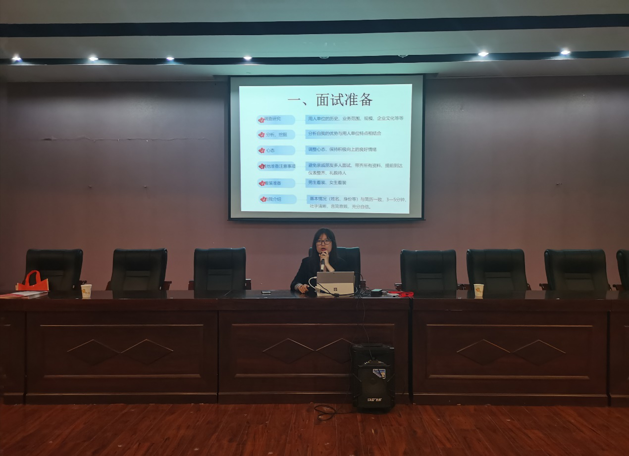 9月24日晚上19:00智信学院在报告厅六楼开展2021届毕业生就业指导课。主讲教师智信学院学工办主任景安琪、辅导员郝宇刚,景安琪老师及2018级全体在校学生参与了此次活动。本次就业指导课景安琪、郝宇刚、尹艳玲老师,分别从面试礼仪、面试技巧、简历制作等方面对2021届毕业生进行专 题培训,并对同学们现场提出的面试中遇到的问题进行解答。