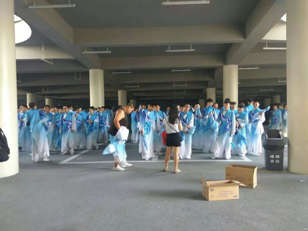 8月11日,机信学院的志愿服务的同学们前往咸阳市奥体中心进行第一次场馆彩排。