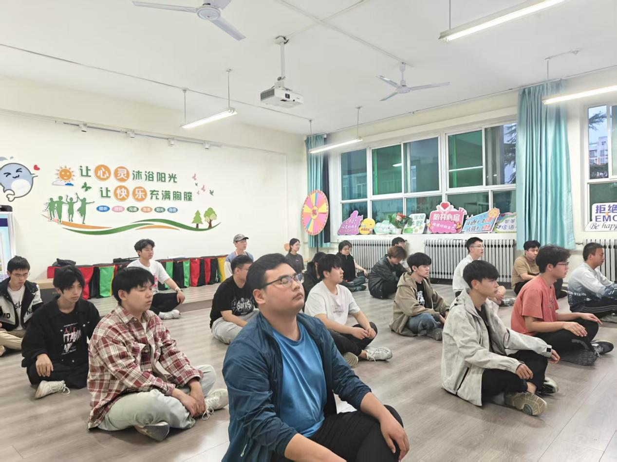 正念呼吸练习环节,成为同学们放松身心的“秘密武器”。大家跟随老师的引导语,缓缓闭上双眼,专注于每一次呼吸的起伏,感受气息在鼻腔中流动,在胸腔中舒展。在这宁静的氛围中,身体的紧张与疲惫渐渐消散,心灵也随之得到了片刻的宁静与舒缓。