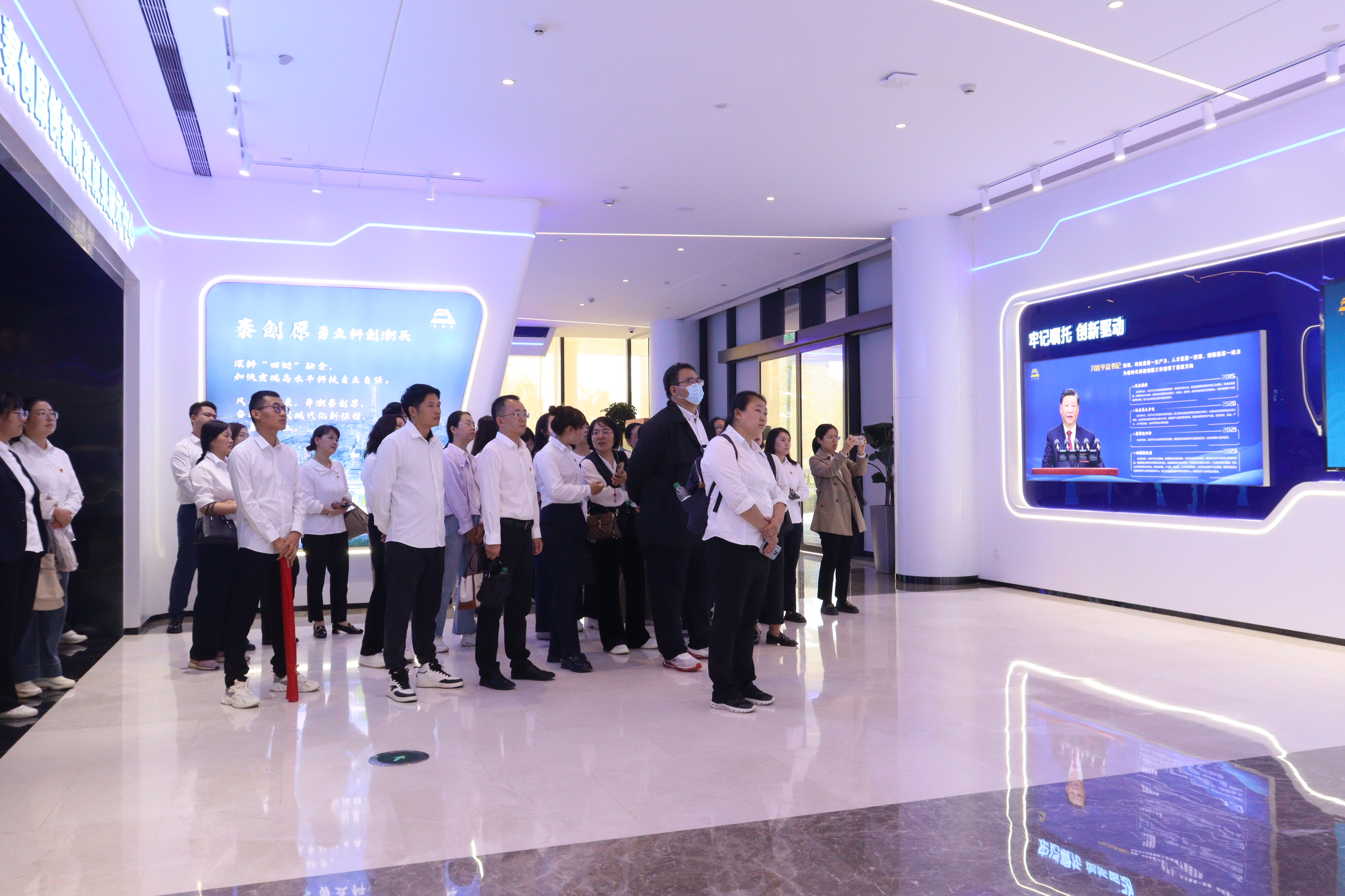 活动中,教师们首先参观了秦创原综合服务中心,通过观看宣传片、听取讲解和参观学习的方式,详细了解了秦创原创新驱动平台的建设历程与取得的成就,对秦创原为创新创业主体提供的标准化、专业化、一站式全流程服务,立足立体联动“孵化器”、成果转化“加速器”、两链融合“促进器”定位,推动创新驱动发展的重要作用和成效有了进一步的认识,切实感受秦创原创新驱动发展的澎湃动力。
