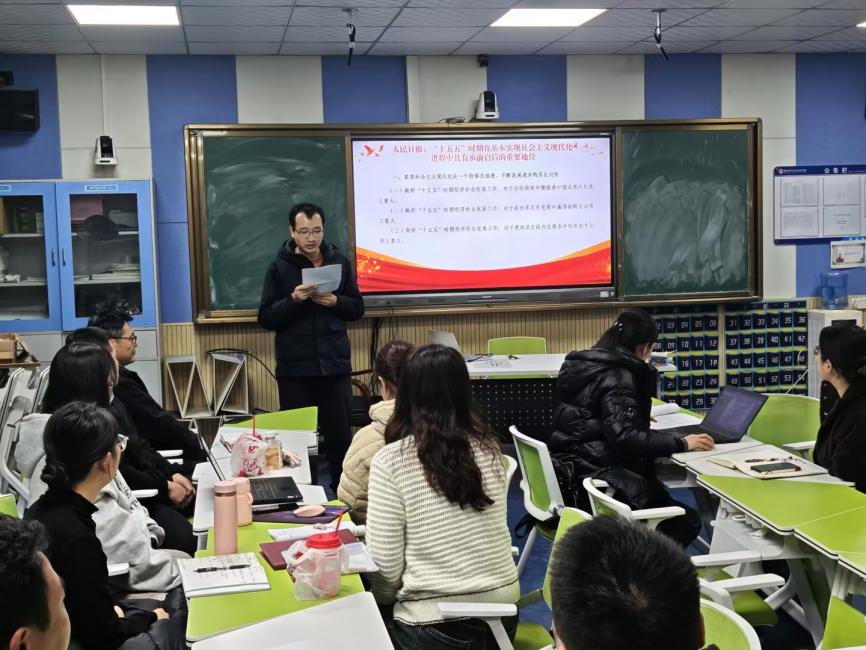 随后,王铭艺领学人民日报相关论述,重点解读“十五五”时期在基本实现社会主义现代化进程中承前启后的重要地位。通过学习,全体教师进一步明确了新时代教育工作的方向与使命,增强了立足本职岗位服务国家发展大局的责任感。