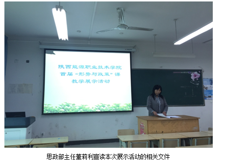 本次教学展示活动首先由董老师宣读相关文件,提出相关要求及组织本次活动的意义。紧接着教学展示活动正式开始。