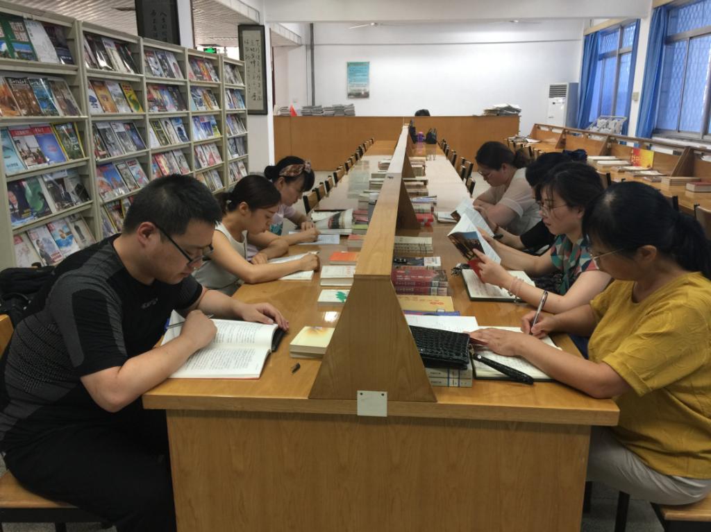 下午3:30,思政部党支部全体党员前往图书馆红色阅览室,开展 “不忘初心 牢记使命” 迎“七·一”——诵读《梁家河》主题党日活动。诵读会上,每位党员分别从纪实文学《梁家河》中选取一篇文章,从“难忘梁家河”开始,经过“近平和我们心切这心”、“团结观”、“他干活从不‘撒奸儿’”、“修身”、“我就是一个农民”、“山绿了,水清了,天蓝了”直到“走进新时代”,党员同志们声情并茂地诵读着,大家随着郎朗的诵读声,一起追寻领袖的为民初心。会后,大家再次对习近平总书记的梁家河岁月和梁家河村的今昔面貌进行了热烈讨论,谈了自己的感想。这种鲜活的学习方式,提升了此次活动的学习教育效果,使党员更加深刻地理解了习近平总书记当年是如何坚守初心,坚定信仰的。