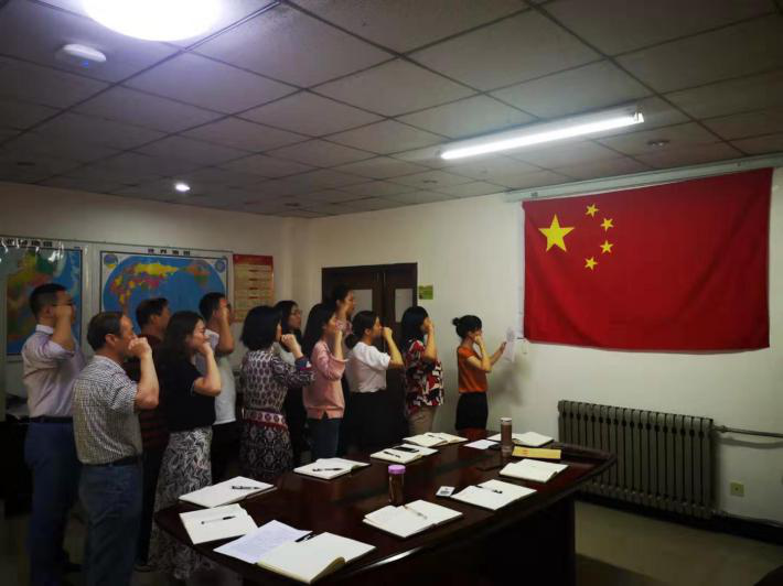 根据陕西省教育厅《关于组织开展教师宣誓活动的通知》(陕教师办[2019]26号)文件精神以及学校的安排部署,思政部组织全体教师面对国旗进行庄严宣誓,由2019年陕西省思政课大练兵标兵、学校优秀教师、教研二室主任王甜老师领誓。庄严的宣誓,使每位教师都更加坚定了做一名好老师的决心。