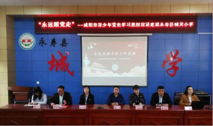 从5月上旬至6月上旬,咸阳市关工委联袂我校举办了“永远跟党 走”——咸阳市青少年党史学习巡回宣讲教育活动,目前已圆满收官。宣讲团由我校马克思主义学院董莉利、许增站、刘苗、孙乐四位优秀教师组成。围绕《党史里的最美青春》《伟人毛泽东》《长征故事》《记忆中的红色经典》四个题目,先后为秦都、渭城、兴平、武功、泾阳、三原、永寿、彬州、长武、旬邑、淳化等11个市区县的19所中小学校师生进行了宣讲,受教育青少年达1.2万余人,用实际行动向中国共产党成立100周年献礼!