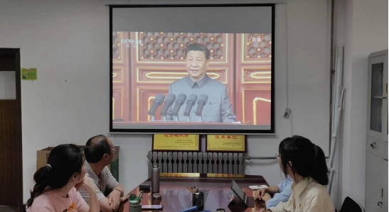 2021年7月1日上午八时,庆祝中国共产党100周年大会在北京盛大开幕,马克思主义学院组织教师集体观看直播庆典,认真学习全会精神,共同庆祝党的百年华诞。