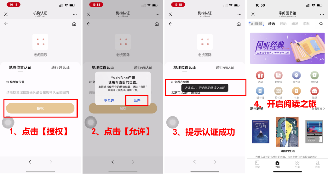点击【授权】,点击【允许】获取您的位置,即可开启阅读之旅~