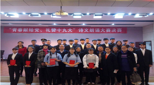 为庆祝党的十九大胜利召开,唱响主旋律,弘扬正能量,12月6日下午,校团委在六楼报告厅举办“青春献给党,礼赞十九大”朗诵比赛总决赛,经前期初赛,共有来自7个二级学院的十支代表队进入决赛。学校党委副书记郭开龙、校团委书记于涛及各二级学院的团总支书记、学生代表300余人参加了此次活动。