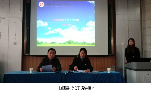 校团委书记于涛在大会上发表讲话,于书记首先代表院团委对临潼校区第一届学生会社团联合会的成立表示祝贺。他讲到,在上一届团学干部的带领下下,我们的团学工作取得了很大的成绩,当前,新的团队,新的机遇,新的任务,新的挑战。在今后的学习工作中,团学干部应紧紧把握我校工作大局,结合校区实际情况,开展具有我校特色和时代气息的工作,尤其在今后维护学校安定良好的学习环境、丰富和活跃校园文化生活。并对全体团学干部提出了3点要求:准确定位,明确职责;严于律己,全心全意为同学服务;正确处理学习与工作的关系。