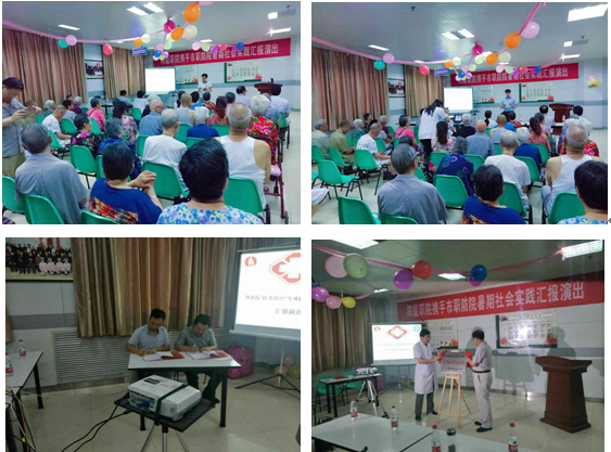 随着汇报演出的结束,给陕能院“医养结合”专项社会实践调研团的暑期社会实践活动画上了圆满的句号。本次社会实践调研活动虽然已结束,但对每一个实践队员来讲这只是社会实践的开始,同学们将把本次社会实践的感悟和心得传递给身边的人,让更多的人关注“医养结合”,关注老年人健康,关心、爱护身边的老年人。