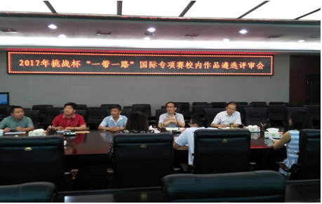2017年6月13日,第十五届“挑战杯”全国大学生课外学术科技作品竞赛“一带一路”国际专项赛校内作品遴选评审会,在办公楼三楼多功能会议室举行。学院党委副书记郭开龙、副院长李耀辉、教务处长、设计院、院团委负责人参加评审会。