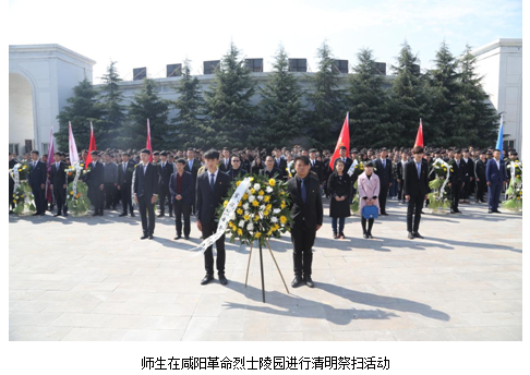 3月31日上午,院团委组织咸阳校区师生代表500余人,在咸阳革命烈士陵园,进行“缅怀革命先烈,传承革命精神”为主题的清明扫墓活动暨我院爱国主义教育基地挂牌仪式。