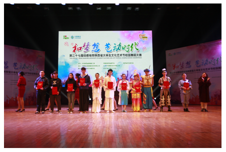 2016年12月10日,由中共陕西省委高教工委、共青团陕西省委、陕西省学生联合会联合主办的第27届陕西省大学生文化艺术节校园舞蹈大赛决赛在长安大学渭水校区大学生艺术中心隆重举行。我院团委积极筹备组织,安排大学生艺术团的中坚力量精心编排参赛,受到评委老师好评。