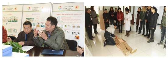 随后,专家组依据《省级红十字示范学校创建评估指标体系》设定的七大指标项目,通过查阅资料、座谈了解和现场检查演练的方式,分别对我院红十字会开展工作进行了全面了解和现场检查。在实地检查中,专家组对校园学生救护队开展心肺复苏急救进行的现场演练进行了检查;在师生座谈及问卷调查环节,专家组对师生了解红十字会工作常识的了解程度进行了全面调查。