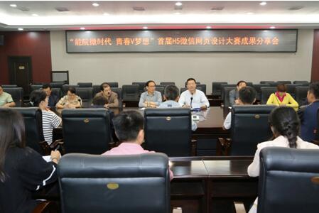 6月2日下午15:45,以“能院微时代 青春V梦想”为主题的首届H5微信页面设计大赛成果分享会在行政楼三层会议室举办,院长刘予东、党委副书记郭开龙、各系党总支书记、团总支书记及获奖学生代表参与分享活动。