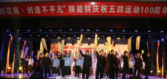 陕能院“五月的花海•创造不平凡”纪念五四运动100周年庆祝文艺晚会于5月6日晚在咸阳校区菊园四楼大学生活动中心隆重举行,校党委书记令狐培选、党委副书记郭开龙、副校长李耀辉、纪委书记张普礼、副校长赵龙波以及相关处室负责人、二级学院党总支书记、团总支书记、辅导员老师、教职工代表、学生代表以及支持我校共青团工作的优秀合作伙伴,共计1000余人观看晚会。整场晚会从“追忆青春”“闪光青春”“奋斗青春”三个篇章体现陕能学子在五四百年之际,对五四历史、五四精神的理解和诠释,也表达了我校师生蓬勃向上、奋发有为的良好精神风貌。