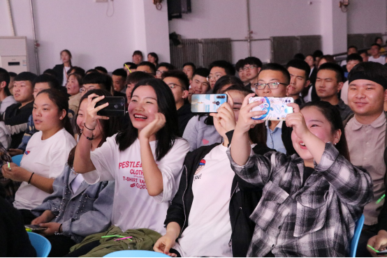 在五四百年之际,校团委新媒体中心还精心编排录制了《我和我的祖国》快闪视频,庆祝五四百年和祖国七十华诞,向伟大祖国献礼。在晚会现场播放了这段视频,激起了全体观众对伟大祖国的热爱之情,大家纷纷挥起手中的国旗,轻声和唱,爱国之情从心底悠然而升。