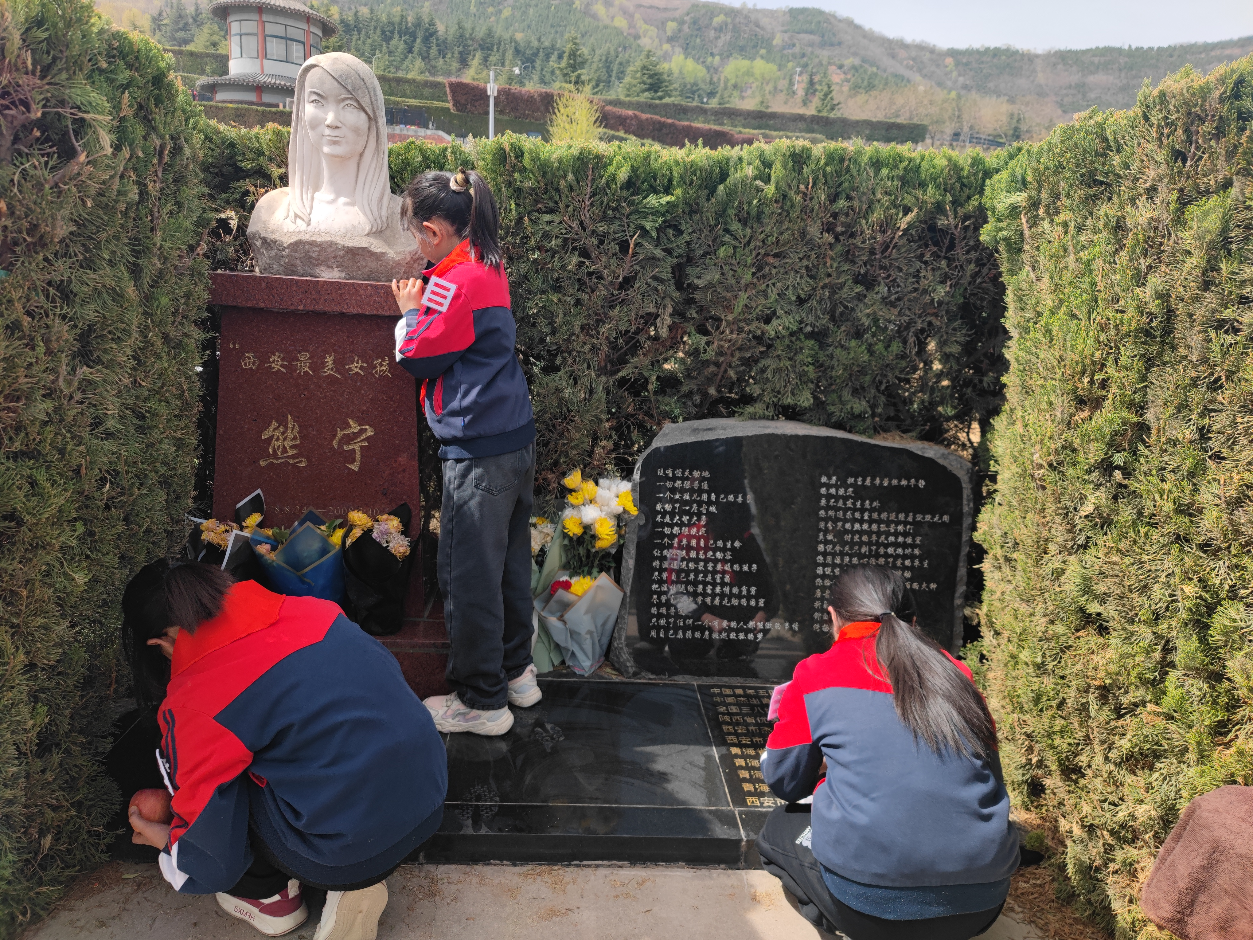 4月1日上午,临潼校区携手邵平店小学前往西安市灞陵陵园,祭扫“西安最美女孩”熊宁墓,学习熊宁事迹、传承志愿精神,校团委、医学护理学院、医学康养学院、医学技术学院、人文教育学院的团学干部代表、社团负责人代表以及社会实践基地——邵平店小学的少先队员代表共45人参加活动。