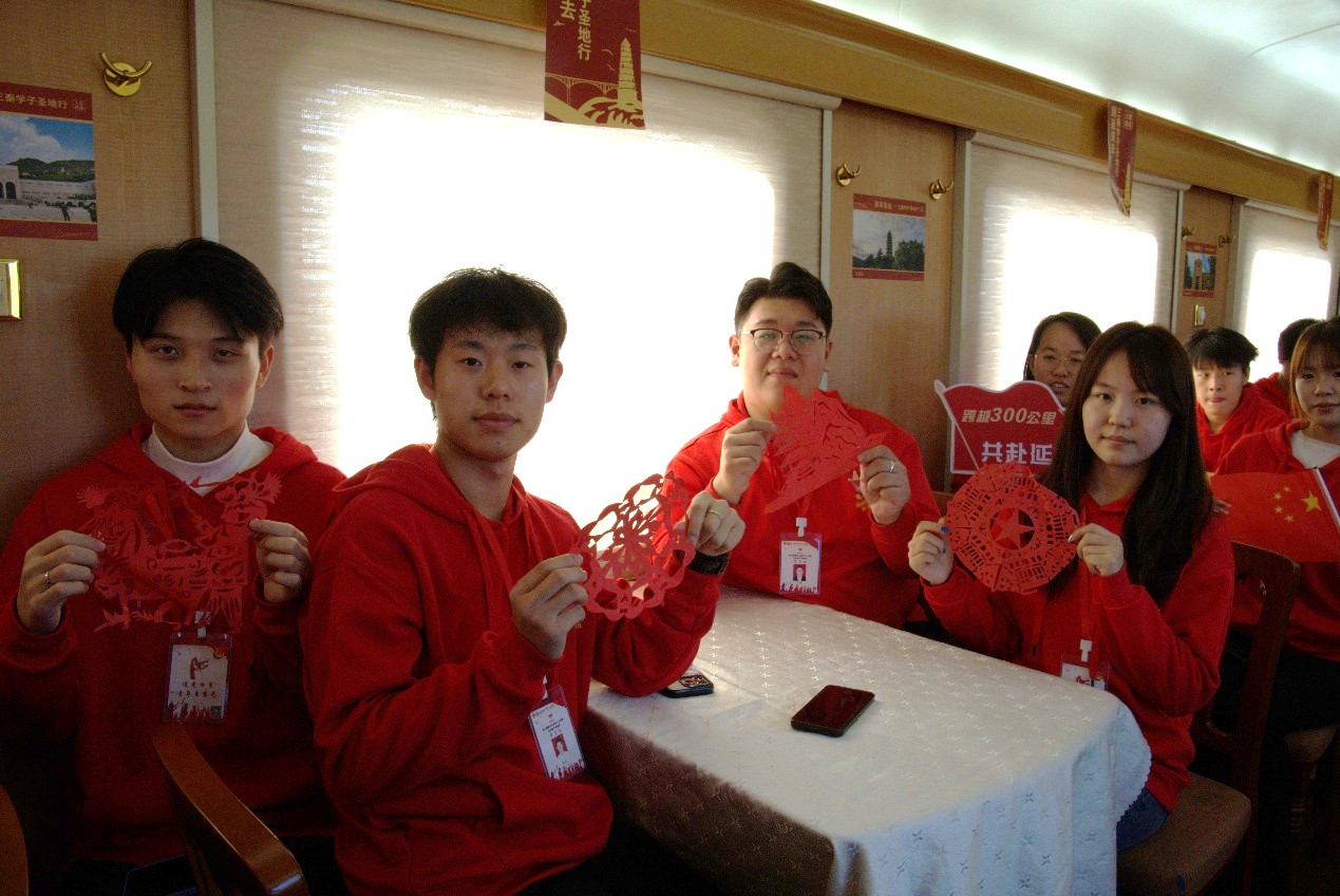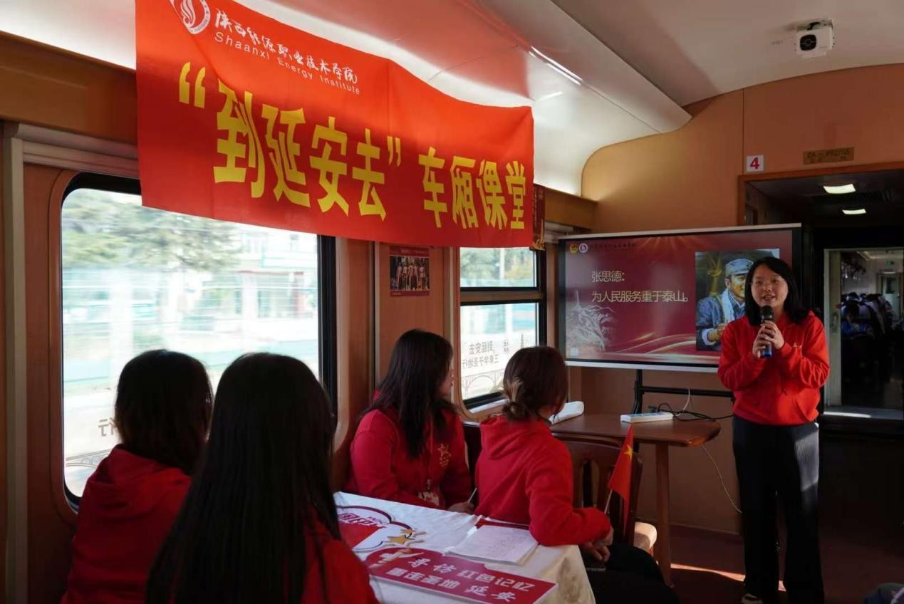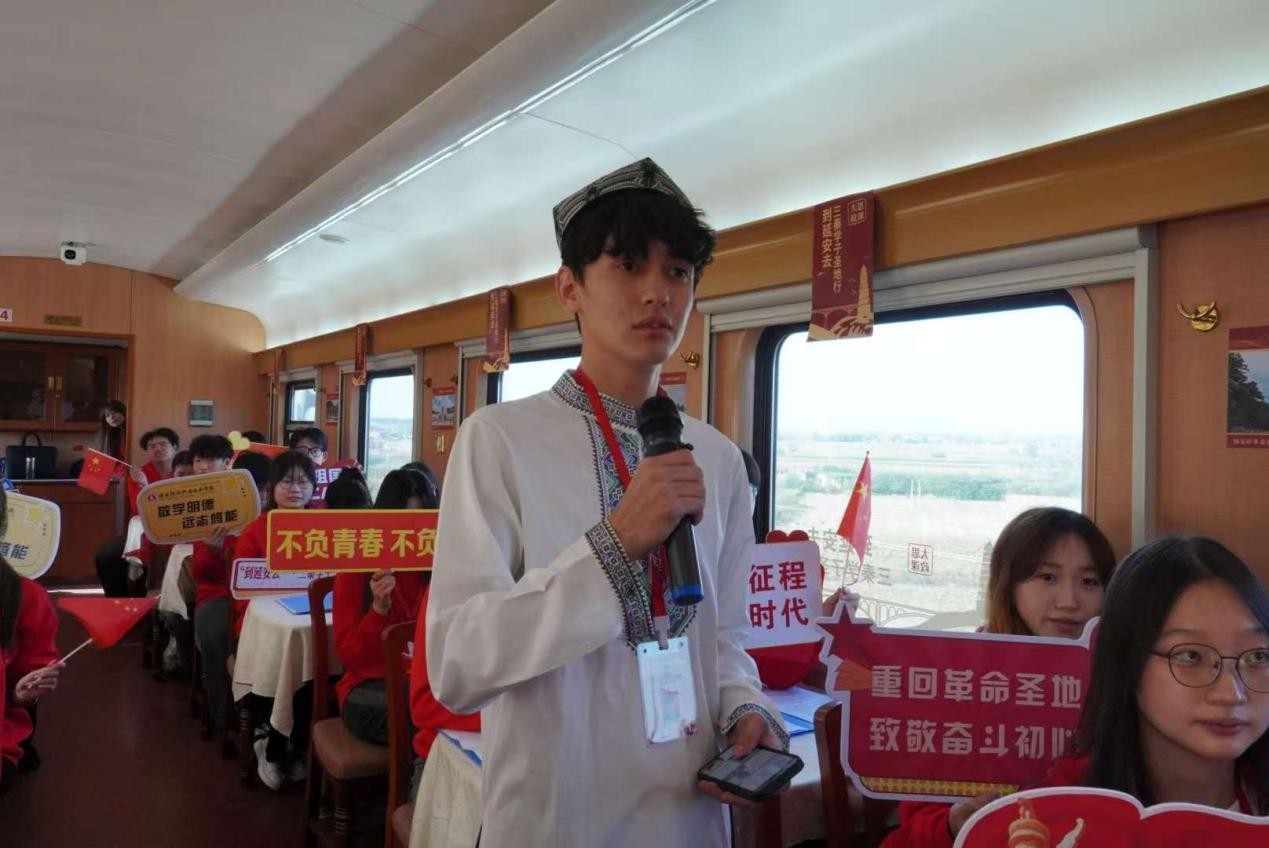 行前组织研读《延安时期重要文献选编》,研读关键文物、电报、照片背后的故事,让历史说话。并以团日活动的形式召开“延安精神如何照亮新时代青年奋斗之路”专题研讨。利用小红专学习平台完成线上课程学习。同时开设车厢课堂,学员们以讲革命人物、唱革命歌曲、念革命书信、说革命电影、走革命旧址的形式交流学习成果。