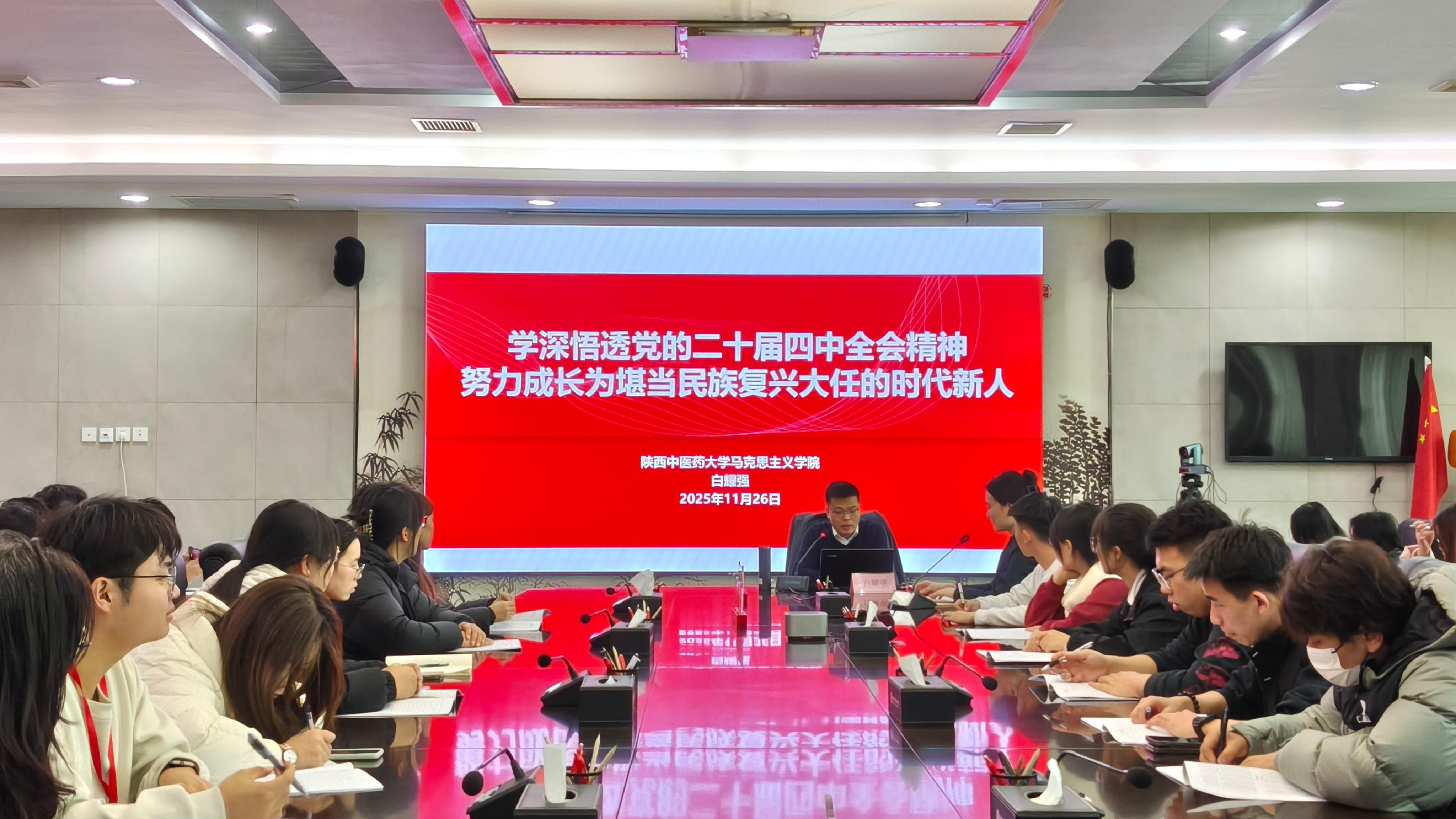 为深入学习贯彻党的二十届四中全会精神,引导青年学子坚定理想信念、增强使命担当,11月26日下午,陕西能源职业技术学院第10期青年马克思主义者培养工程培训班于咸阳校区第三会议室隆重举行理论学习第一讲——《学深悟透党的二十届四中全会精神,努力成长为堪当民族复兴大任的时代新人》。本次理论学习讲座特邀陕西中医药大学马克思主义学院副教授白耀强担任主讲,校团委负责人及青马学员100余人参加学习。