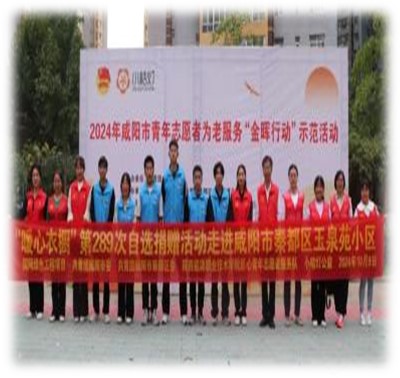 2024年,咸阳市青年志愿者为老年人服务“金晖行动” 示范活动开展。陕能院智信学院匠心青年志愿者服务队积极参与,身着蓝色志愿服的他们,在活动现场汇聚力量。走进社区,为老人送去关怀,陪老人唠家常、帮老人整理物品,用实际行动践行 “奉献、友爱、互助、进步” 志愿精神,让 “金晖” 照亮老人的生活,也让青春在服务中闪光。