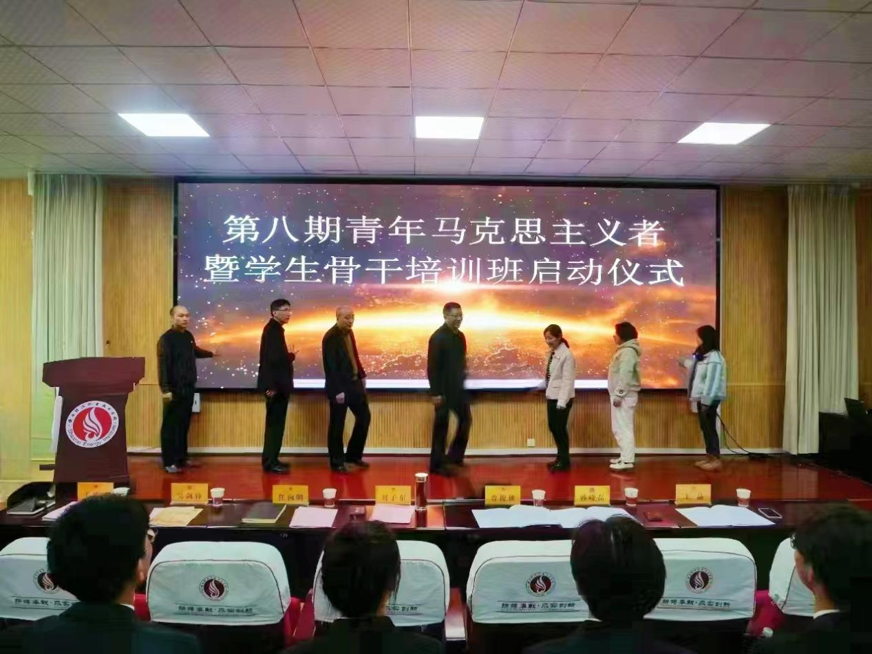 11月8日下午,我校第八期青年马克思主义者暨学生骨干培训班开班仪式在咸阳校区办公楼文林大讲堂举行。校党委书记刘予东、党委副书记任向明、组织部副部长曹俊侠、宣传部副部长韩晓磊、学生工作部副部长王晶、马克思主义学院党总支书记吴剑锋以及各二级学院团委书记出席活动。仪式由校团委书记王皓天主持,本期173名青马学员分别在咸阳、临潼两校区同步参会。