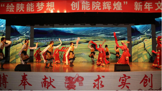 12月26日晚7点,我校“绘陕能梦想•创能院辉煌”2020新年文艺晚会在菊园四楼大学生活动中心隆重举行。校党委书记令狐培选、党委副书记校长刘予东、党委副书记郭开龙、副校长李耀辉、赵新法、纪委书记张晋礼、副校长张龙波、党委副书记任向明,以及相关处级单位负责人、二级学院团总支书记、辅导员老师、教职员工、学生代表等1100余人欢聚一堂,晚会现场还开通了同步直播平台,截止晚会结束,晚会直播频道观看点击率3.09万,让不能到达晚会现场的师生朋友也一起观看了晚会,喜迎新年的到来。