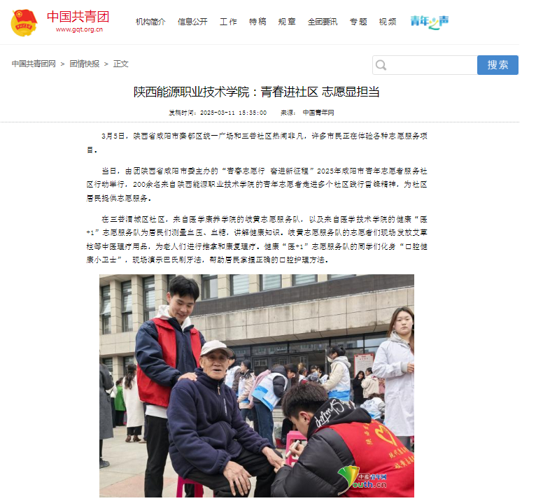 近日,我校"青春进社区"志愿服务活动受到团中央官方媒体报道,展现了我校新时代青年学子服务社会的责任担当。