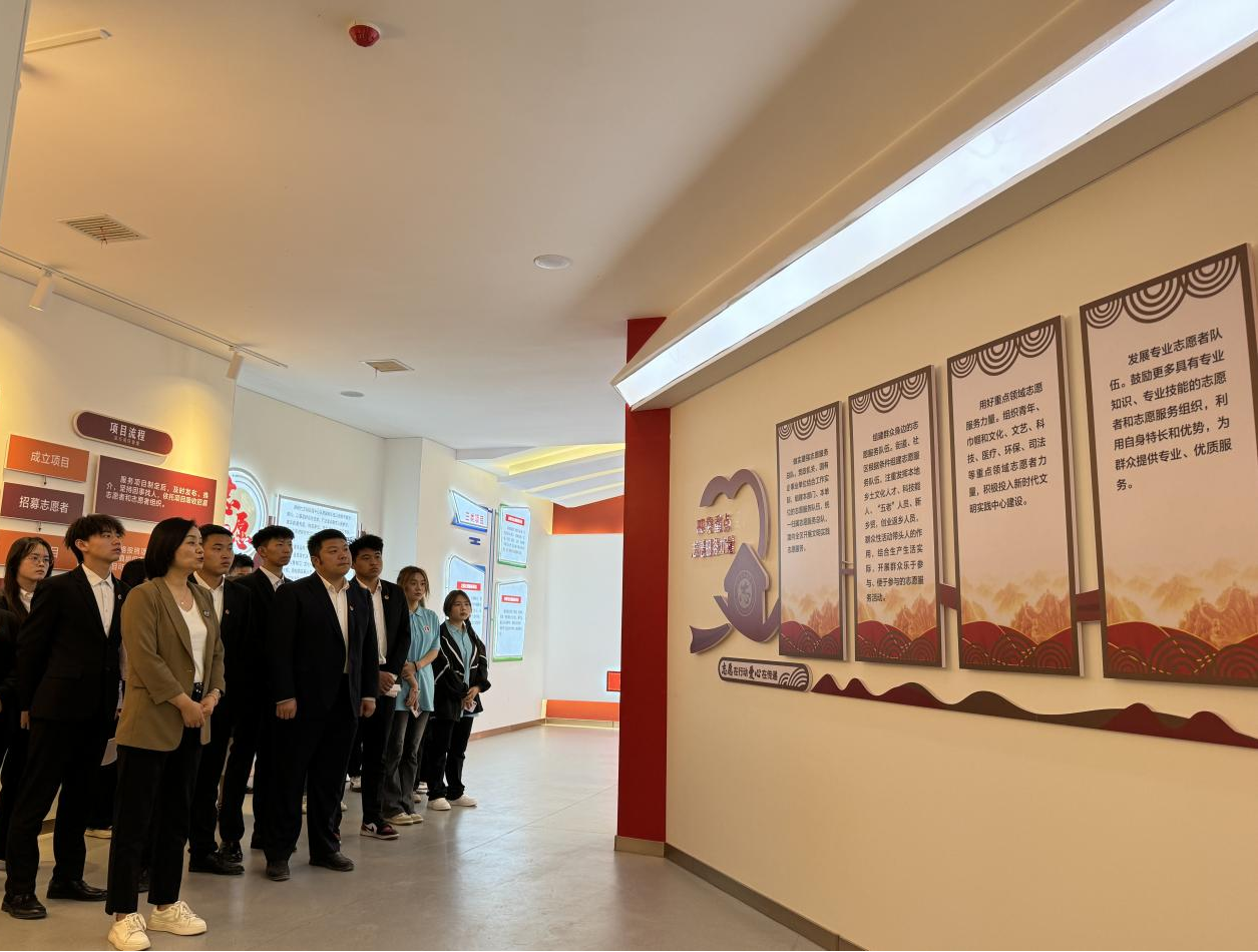 现代康养学院团委组织全体党员师生及各班团干部,前往渭城区新时代文明实践中心参观学习。展馆展示了渭城区各时期涌现的各级各类先进典型人物,通过参观学习,让大家接受了一次“沉浸式”的文化熏陶和党性教育,更加直观地感受到了新时代文明实践的重要意义,了解到新时代文明实践工作是以志愿者为主体力量、以志愿服务为主要形式,推动习近平新时代中国特色社会主义思想深入人心。