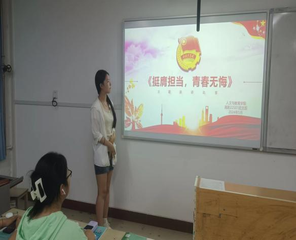 人文与教育学院团委各团支部开展以《挺膺担当,青春无悔》为主题的演讲比赛,讲述自己对青春担当的理解和践行故事,了解挺膺担当的内涵和意义,培养了在面对责任和挑战时,勇于担当、积极作为的意识。
