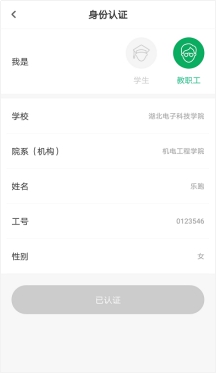 2)、选择对应“身份”并填写对应信息后,点击“认证”按钮即可提交认证申请。