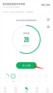 点击“进入乐跑”,弹出安全提示,点击进入乐跑,开始跑步;点击“更换跑区”,进入乐跑设置(可见3.2),更换跑区;