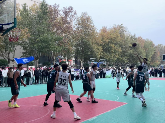 赛场上,队员们配合娴熟、全力以赴、个个火力全开、一往无前。干净敏捷的运球转身、精准无误的三分投篮,不知疲倦的奔跑、跳跃、防守、进攻,一个个精彩回合引来观众阵阵喝彩。场边的啦啦队摇旗呐喊,为场上队员加油鼓劲,热烈而澎湃。一场场紧张激烈、扣人心弦的比赛,不断在球场内上演。一滴滴青春激情的汗水,挥洒在拼搏的舞台。