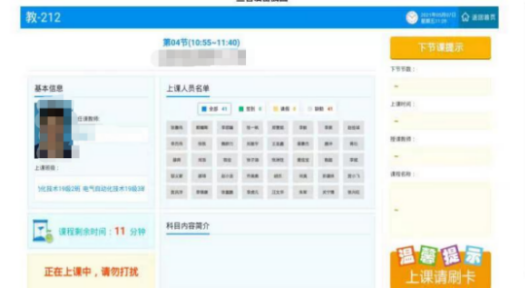 通过数据中台对接电子班牌,除日常显示课表信息,课程信息,教师学生打卡功能外,在教职工申请调课后能够及时同步数据。