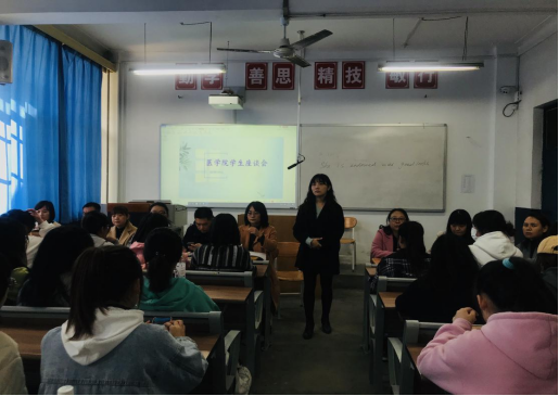 2021年11月3日中午12:30,医学院在教学楼109教室组织召开了学生座谈会,此次会议把开展学生教育教学实践活动与解决学生的实际困难有机结合,为解决学生在专业学习和日常生活中的实际困难提供了良好平台。医学院副院长张淑娟、教学办主任赖菁华、学工办主任李雯、教学秘书赵飞、影像教研室主任赵星、康复美容教研室主任李蕊、口腔专业教师董伟、梁爽和辅导员老师、二个年级的学习委员参会,会议由教学办主任赖菁华主持。