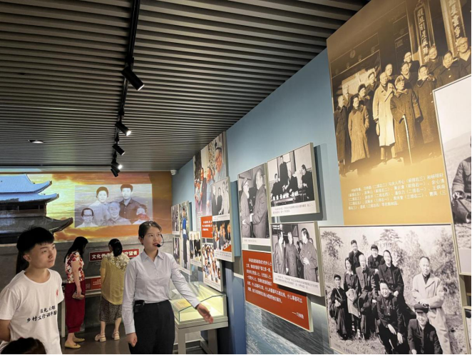 队员聆听讲解员讲述照片里的故事