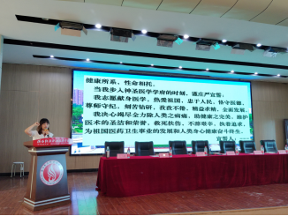 副院长赖菁华带领会场全体师生肃立,举起右手庄严宣誓:“健康所系,性命相托…我决心竭尽全力,除人类之病痛…”。整齐而又响亮的誓言表达着我院师生为祖国医学事业努力学习的坚定决心。