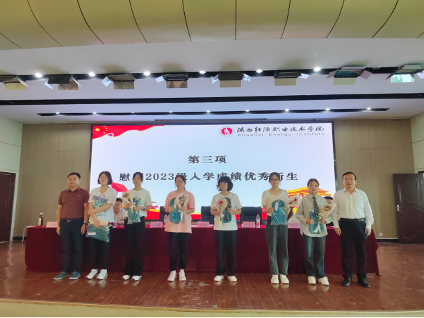 张多宣读2023级高考入学成绩优秀学生名单,唐恭贺、任春晓、张多、赖菁华为各专业在高考中取得文理科成绩排名前三的新生们颁发新生入学奖,以激励2023级同学们脚踏实地、努力学习、踔厉奋发、敢于拼搏,在大学生活中不断蜕变,取得更加优异的成绩。
