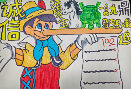 诚以立身,信以守道。本次原创艺术作品征集比赛,不仅为学生提供施展才华的舞台,还进一步教育和引导学生积极践行社会主义核心价值观,争做诚信好少年。相信他们在今后的学习生活中,一定会做到诚信做人,诚信做事。
