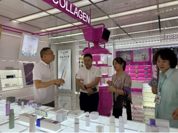 座谈会结束后,在张宇总监等的陪同下,一行参观了巨子生物的办公、生产车间、产品展示等区域,张宇详细介绍了公司的发展历程、最新技术平台、项目开展等情况。
