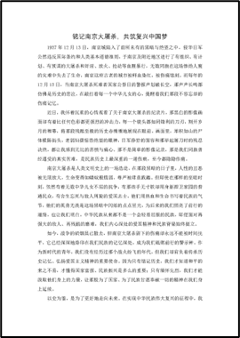 在本次活动中,我们看到了一份份精心撰写的主题征文,每一篇都饱含着对国家公祭日的思考和感悟。青年们深入挖掘历史背后的含义,将对惨痛历史的真挚情感融于独特视角,让我们更为深刻地铭记了南京大屠杀带来的伤痛,从而不忘历史、缅怀先烈。这些作品让我们感受到了历史的沉重,也让我们更加坚定了珍爱和平的决心。