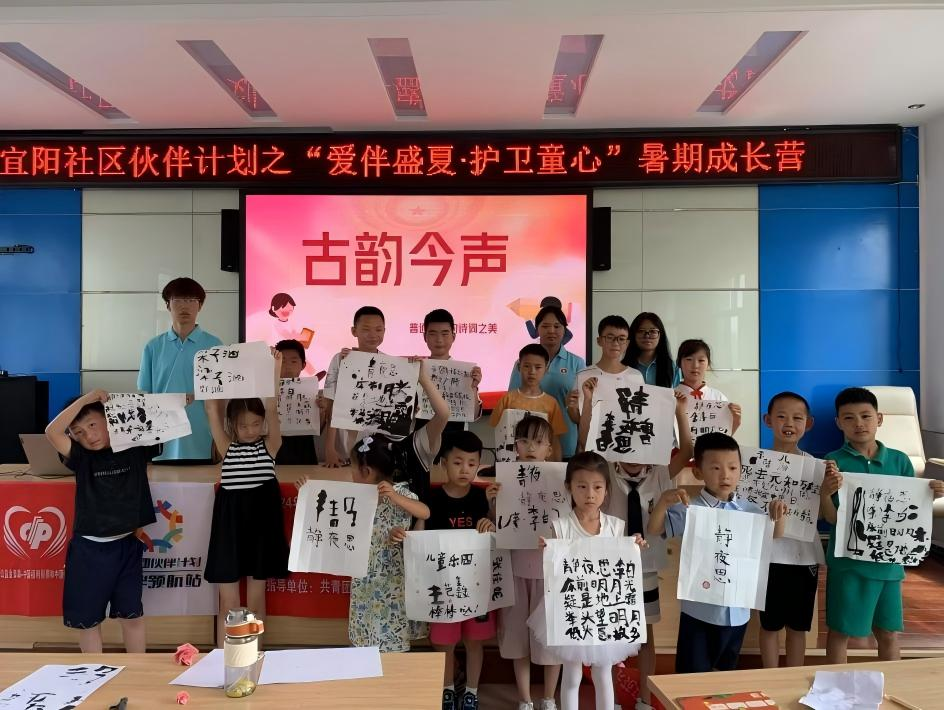 立足社区实际需求,实践队联合宜园社区、宜阳社区及宜君仁悦社工服务中心,构建“高校+社区+社工组织”协同服务模式,形成资源互补、分工协作的服务合力。团队在宜园社区开展“诗韵陶趣,童梦飞扬”活动,通过诗词大会让孩子们在游戏中学习古诗词,联合非遗传承人指导陶艺制作,让传统文化浸润童心。