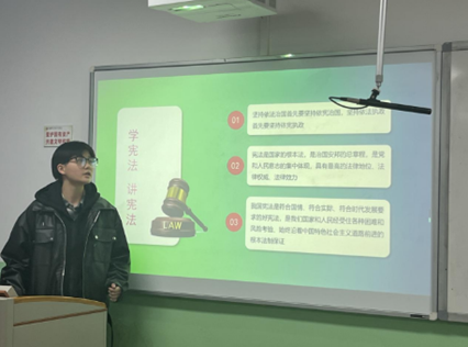 此次比赛同学们围绕宪法相关规定,从社会热点、案例故事、自身体会等方面切入,讲述自己学习宪法法治知识、树立法治意识的心得体会。旨在让大学生进一步增强国家安全、中华民族共同体、规则、平等、诚信、程序等意识,了解掌握自我保护防范不法侵害、预防诈骗、洗钱等知识和技能,从小树立法治思维和法治观念,逐步养成自觉守法、遇事找法、解决问题靠法的思维习惯和行为方式。