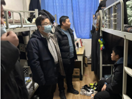 现代康养学院学工党支部全体党员教师在现代康养学院党总支书记唐恭贺、院长任春晓以及副书记张多的带领下,深入学生宿舍看望慰问学生,了解学生具体情况,倾听学生心声,询问学生学习、思想与生活情况,对学生关心的问题给予积极关注。