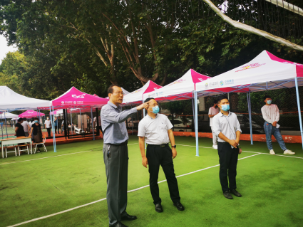 9月2日下午,校长朱忠军、校党委副书记任向明带领各职能处室及二级学院负责人,对我校2021级新生开学防疫演练及各项新生报到准备工作进行了检查。