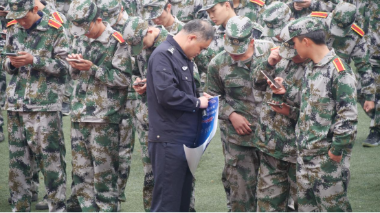 为进一步做好我校网络安全保障和网络意识形态管理工作,增强广大师生网络安全技能和辨别意识,切实提高学生自我防范能力,营造校园内反诈防骗的浓郁氛围,10月20日上午,学工部、保卫处组织开展网络安全教育进校园活动。咸阳市公安局渭城区分局文林路派出所易所长一行来到我校咸阳校区军训现场,为2021级新生进行网络安全及反诈知识教育,现场指导学生安装“国家反诈中心”APP。