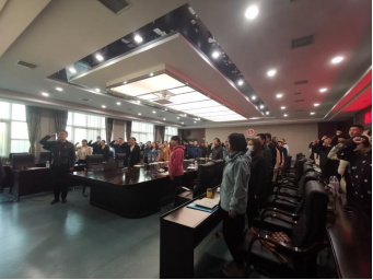 学工部副部长、团委书记冯超领誓、辅导员宣誓
