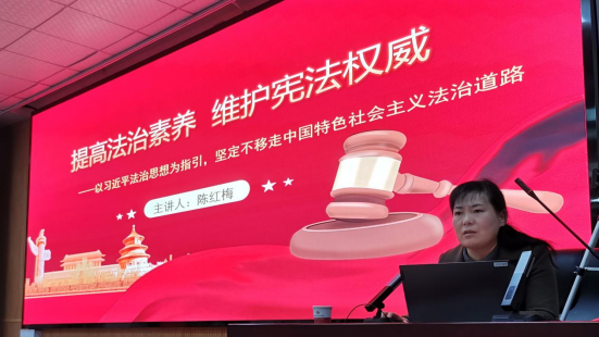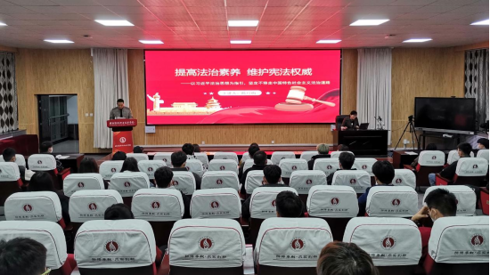 12月2日晚,在文林大讲堂,我校邀请陕西财经职业技术学院马克思主义学院院长陈红梅教授,为学生做题为“弘扬宪法精神,维护宪法权威——以习近平法治思想为指引,坚定不移走中国特色社会主义法治道路”的宪法宣传知识讲座。报告会由学工部部长刘浩主持,来自全校6个学院的99名学生代表参加讲座。