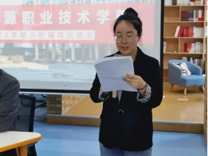最后,新入职辅导员代表张爱林表态发言:一是以饱满的工作热情和爱心温暖每一位学生;二是要增强主动性,实现从要我育人到我要育人的转变;三是要争做大先生,实现点燃一盏灯,照亮一大片的目标。