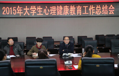12月24日下午,学院召开2015年心理健康教育工作总结会。党委副书记郭开龙、副院长赵新法及学工部、团委、思政部负责人、系(部)党总支书记及心理咨询室兼职咨询老师参加会议。